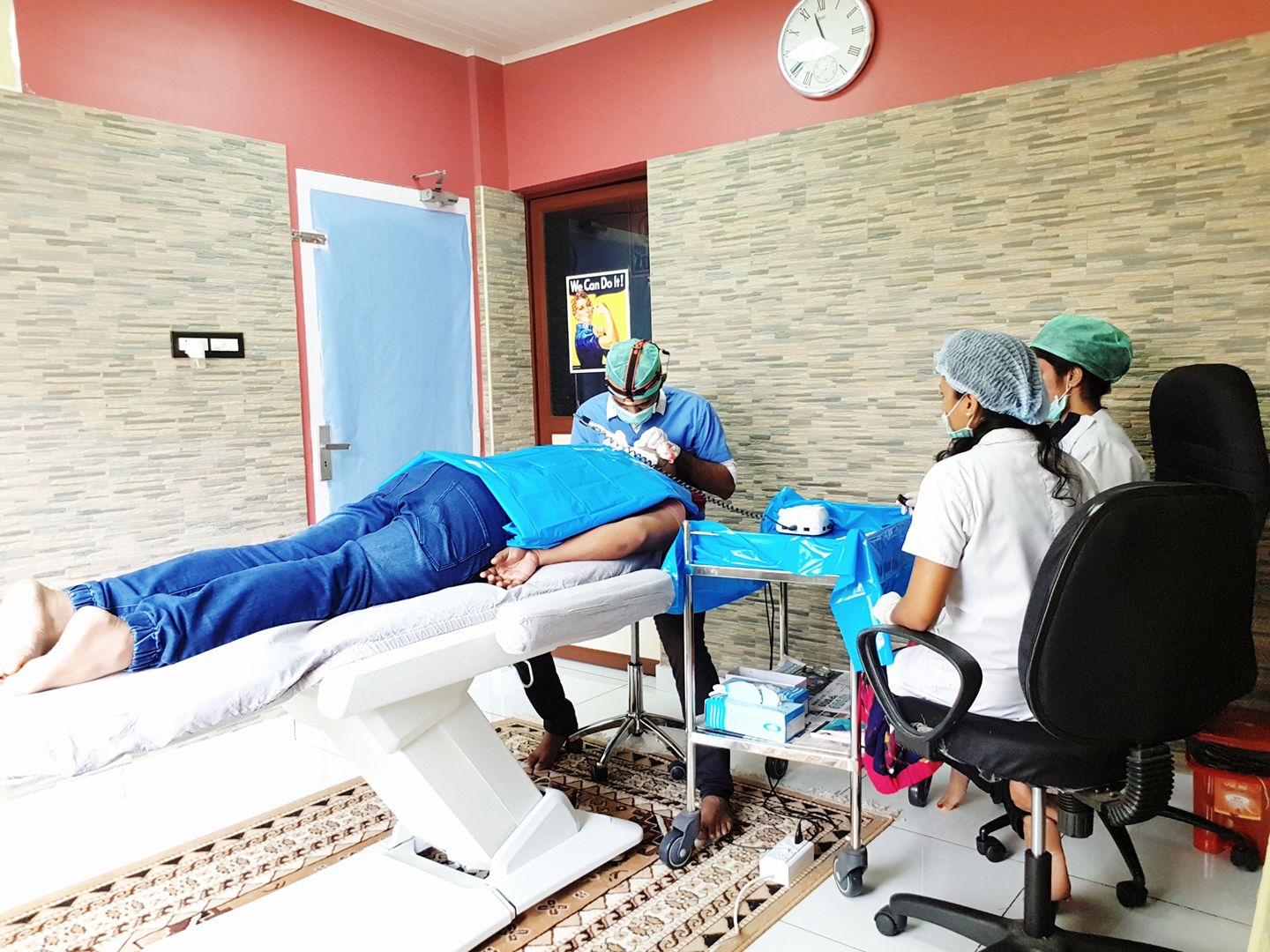 Man going through follicular unit extraction process
